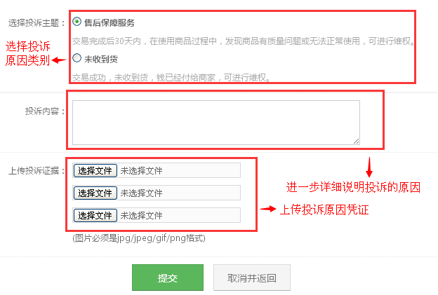 3.因交易过程中商家有违法、出售假货或有害物品和存在交易严重过失等原因,可选择交易投诉进行维权。